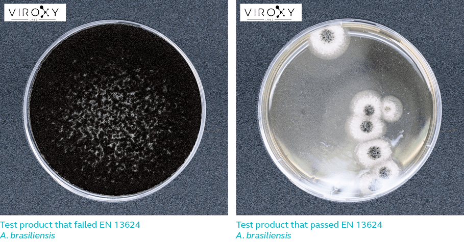 For a product to pass EN 13624, it must be able to achieve 4-log reduction against the respective test microorganisms listed in Table 1. In other words, the product must be able to kill 99.99% of yeasts or fungi while meeting all the other requirements of the European standard.
